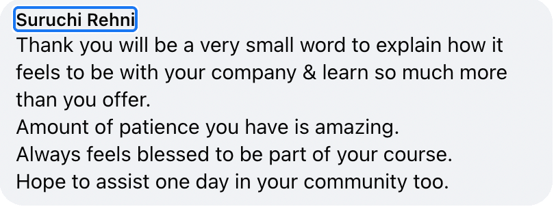 You've taught us to take care of even the minor details. Bijal says that What she's paid is very less compared to the amount of knowledge she has received from this course!