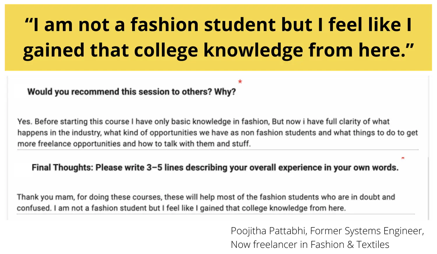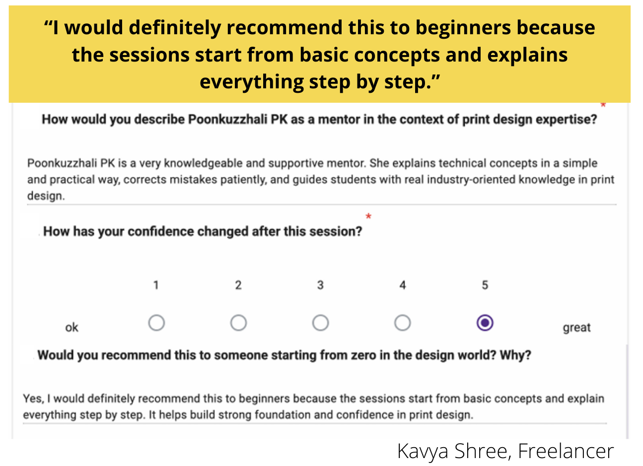 Her teaching approach bridges the gap between creative design and real-world industry execution, enabling designers to confidently work with global clients.